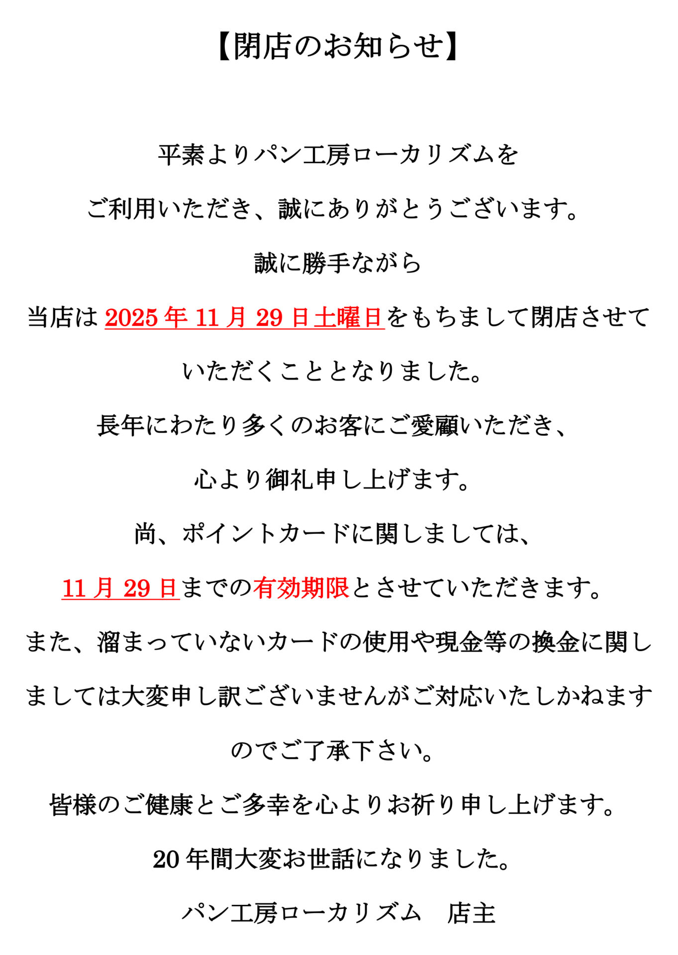 パン工房ローカリズム田本です 🍞【お知らせ】